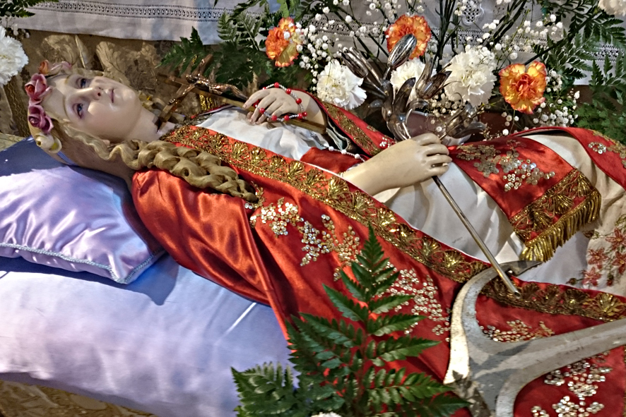 Encontramos no seu interior uma bela e comovente imagem jacente de Santa Filomena.
